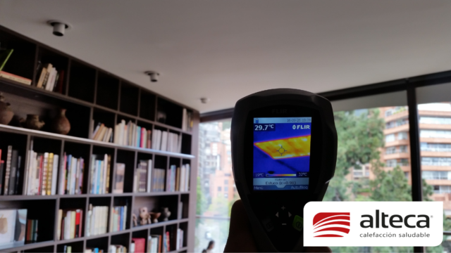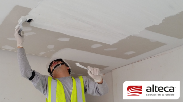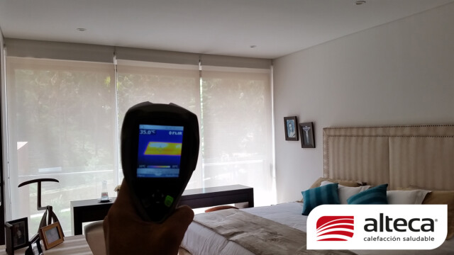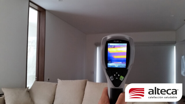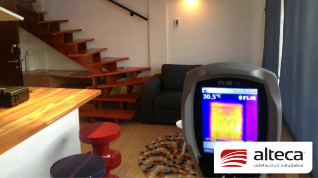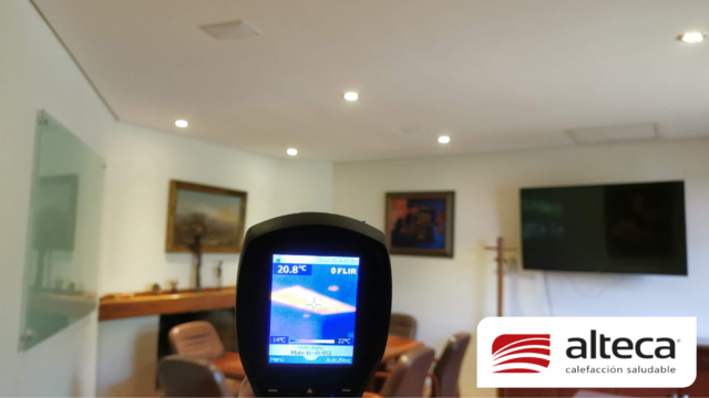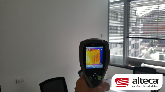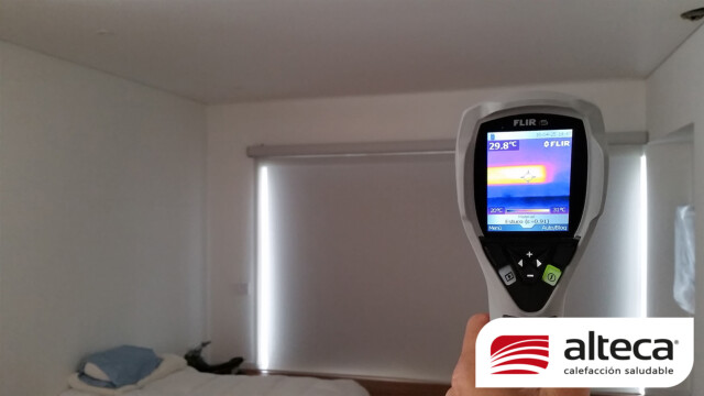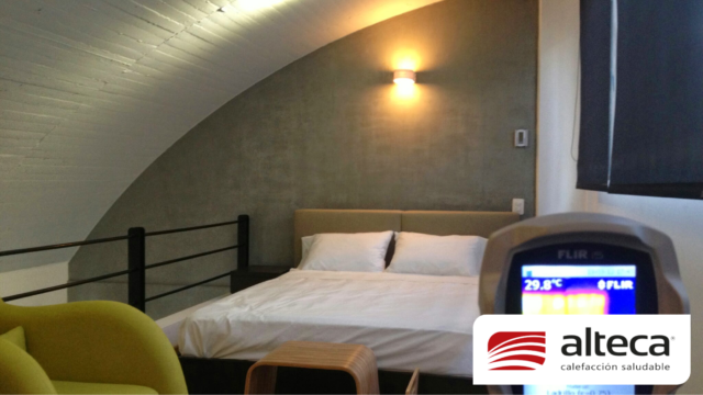 Sistema único en el mundo que consiste en una lamina de 1 mm de grosor que se adhiere a las paredes y techos, luego permite estucar y pintar sobre las mismas para quedar INVISIBLE, además de no ocupar espacio. Funciona a traves de energía eléctrica (208V – 220V) debido a su fabricación europea y se controla a traves de un termostato ambiental con el que podemos programar encendido, apagado y temperatura deseada (21ºC) en el espacio a calefactar.